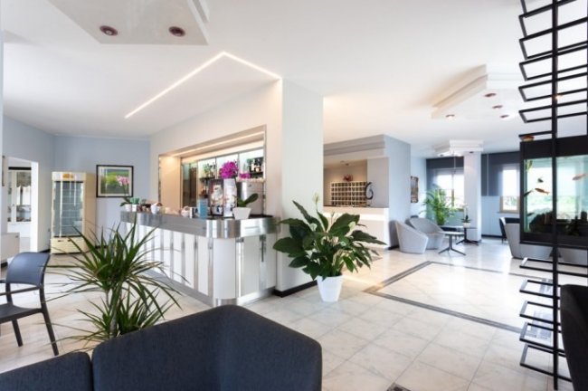 Dispone inoltre di un'ampia hall, bar, salottino TV, giochi per bambini, sala giochi, palestra, ampio terrazzo vista mare.