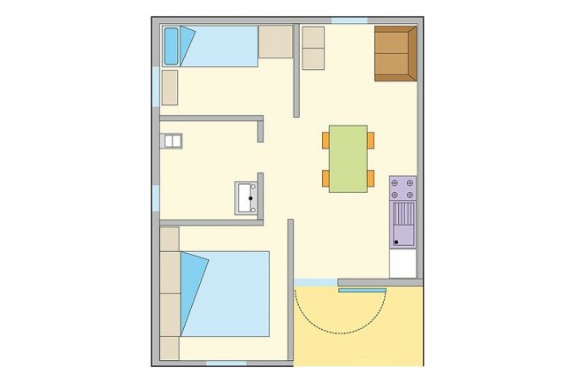Bungalow indipendenti in muratura, con isolamento termico ed acustico. Possono ospitare fino a 6 persone e dispongono di area giorno con angolo cottura attrezzato, bagno con doccia, 1 o 2 camere da letto e veranda esterna attrezzata.